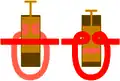 Systém otočných ventilů patentoval Josef Riedl ve Vídni v roce 1832.[2] Tento nástroj se někdy nazývá jako německá trubka, používá se především v Německu a Rakousku. Zmáčkne-li se klapka, pootočí se také otvor a zapojí tak další trubici do okruhu výdechového proudu. Německá trubka je celkově kóničtější, což má určitý vliv na barvu tónu. Tento typ trubky s oblibou obsazovali do svých symfonických děl němečtí skladatelé 19. století, pro věrné ztvárnění těchto kompozic je tedy vhodné obsadit žesťovou sekci právě těmito nástroji.