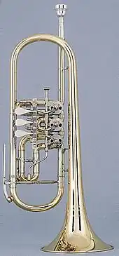 Další příbuzný nástroj – křídlovka, má ještě více kónickou trubici, což jí dává ještě bohatší zvuk. Pro lepší intonaci nižších tónů se u ní občas objevuje čtvrtá klapka.