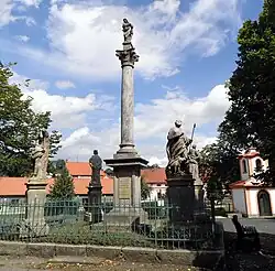 - ↑ Ústřední seznam kulturních památek České republiky [online]. Praha: Národní památkový ústav [cit. 2017-01-11]. Identifikátor záznamu 155616 : Sloup se sochou Panny Marie, Morový sloup. Památkový katalog. Hledat dokumenty v Metainformačním systému NPÚ [1].