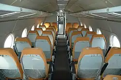 - Tu-134 – První série měla kapacitu 64 cestujících, později rozšířena na 72 cestujících.