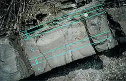 - ↑ Kuenen, P.H., 1957, Sole markings of graded graywacke beds. Journal of Geology, 65, s. 231–258