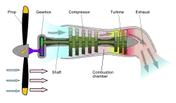 - Hřídel proudového motoru je spojená s hřídelí vrtule přes převodovku (reduktor). Převodovky se používá proto, že vrtule má mnohem větší průměr než lopatky turbíny, a tak by se při pracovních otáčkách turbíny kraj listů vrtule pohyboval nadzvukovou rychlostí, což je nežádoucí. Převodovka umožňuje plynulé otáčení vrtule patřičně sníženými (redukovanými) otáčkami.