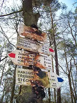 115 Malovidy žlutá turistická značka 6011 49°49′41″ s. š., 14°56′40″ v. d.