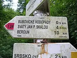 6 Svatý Jan pod Skalou (rozc.) žlutá turistická značka 6042 49°58′14″ s. š., 14°7′46″ v. d. 250 m