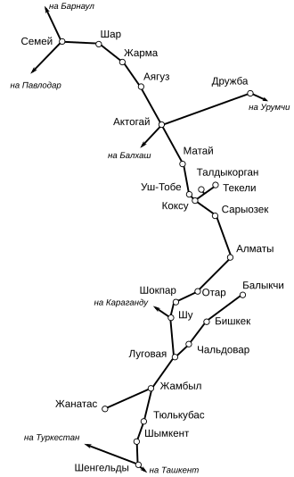 Plán na železnici, která by usnadnila dopravu bavlny ze střední Asie na Sibiř, se objevil už v roce 1886. Rozhodnutí o stavbě bylo přijato roku 1906 a do roku 1915 byl dokončen úsek z Novonikolajevska (dnešní Novosibirsk) do Semipalatinska a na jihu z Arysu do stanice Burnoje.