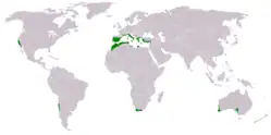 | Státy | Bulharsko, Černá Hora, Egypt, Francie, Gibraltar (Velká Británie), Chorvatsko, Irák, Itálie, Izrael, Jordánsko, Kanárské ostrovy (Španělsko), Kypr, Libanon, Libye , Madeira (Portugalsko), Malta, Maroko, Monako, Portugalsko, Řecko, San Marino, Severní Makedonie , Slovinsko, Sýrie, Španělsko, Tunisko, Turecko, Západní Sahara (Maroko) |