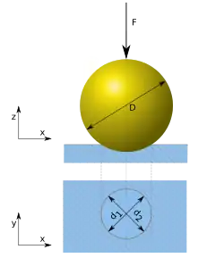 Ocelová kulička o průměru 10 mm je silou vtlačena do vzorku dřeva. Pro měkká dřeva se používá síla 100 N, pro středně tvrdá 500 N a pro tvrdá 1000 N. Následně se změří průměr vzniklé jamky a vypočte výsledek za použití vzorce: