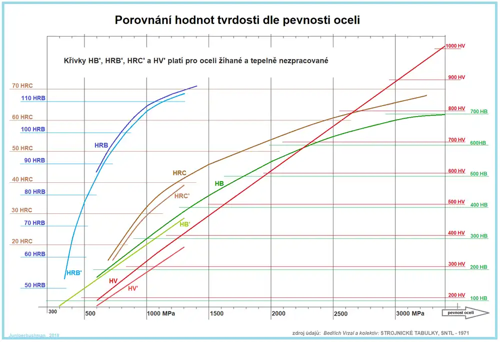 Hodnoty tvrdosti naměřené různými metodami lze mezi sebou porovnávat a převádět pomocí převodních tabulek nebo empirických vztahů pro konkrétní kovy. U žíhaných a zušlechtěných ocelí se obvykle udává požadovaná pevnost. Tuto pevnost je třeba po příslušném tepelném zpracování zkontrolovat, což se provádí zkouškou tvrdosti (obvykle dle Rockwella) a přepočtem dle tabulek na pevnost v MPa. Nejpřesnější by bylo měřit tvrdost pro tento účel metodou dle Vickerse, protože naměřené hodnoty jsou prakticky přímo úměrné hodnotě pevnosti. Toto se však nepraktikuje, neboť povrch materiálu pro měření dle Vickerse musí být velmi hladce očištěn, nejlépe vyleštěn.