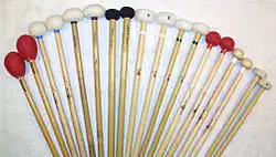 napnuté několika upínacími kolíky. U moderních nástojů době je kůže nahrazována syntetickými materiály (plasty). Blána se rozezvučí úderem paliček. Úderové konce paliček mohou být rovněž z různých materálů (plst pro měkčí zvuk, nebo dřevěné či plastové pro tvrdší úder apod.).