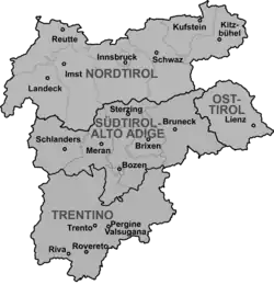 - Tridentsko-Jižní Tyrolsko – italský autonomní region, dále se dělí na 2 autonomní provincie: