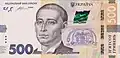 500 hřiven (výroční) | 154 × 75 mm | béžová | Hryhorij Skovoroda se stylovým přetiskem "30 let nezávislosti Ukrajiny" | 20. srpna 2021 | |