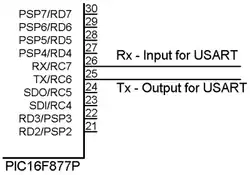 Nastavení pinů pro vstup a výstup v mikropočítači se provádí prostřednictvím nastavení v registrech SPEN (bit RCSTA<7>) a TRISC<bity 7:6>.