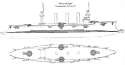 ![]() USS Brooklyn (ACR-3) v loděnicích the New York Navy Yard v roce 1898 | |