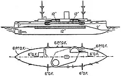 - ↑ a b c GARDINER, Robert. Conways All the World's Fighting Ships 1860–1905. New York: Mayflower Books, 1979. S. 139. (anglicky)