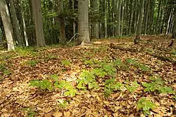 Oblast přírodní památky je ze 100 % pokryta porostem svazu květnaté bučiny (Eu-Fagenion) s hlavním zástupcem buku lesního (Fagus sylvatica),[3] ve kterém místy rostou jednotlivě jedinci smrku (Picea abies), jedle (Abies alba), jasanu (Fraxinus excelsior) a javoru mléče (Acer platanoides).[4] Při detailnějším pohledu je na 76,43 % území (5,61 ha) zastoupena klenová bučina, na 21,53 % (1,58 ha) se nachází svěží jedlová bučina, 0,27 % (0,02 ha) pak připadá na kyselou jedlovou bučinu a zbylých 1,77 % (0,13 ha) připadá na zakrslou jedlovou bučinu.[6] Stromové patro má přibližně stejnověký charakter,[4] nicméně místy se již začíná objevovat samovolné zmlazování bukových porostů a jednotlivě i málo zastoupené jedle.[7]