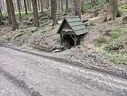 Nedaleko od lesní silnice u přírodní památky Černá skála (ve svazích hory Suchý kopec) se nachází kameny obložená a dřevěnou stříškou krytá studánka. Stříšku postavily Lesy České republiky. Voda ze studánky stéká do Studeného potoka a patří do povodí řeky Svratka, přítoku řeky Dyje v úmoří Černého moře. Studánka se nachází ve výšce cca 704 m n. m. Místo je celoročně volně přístupné.[1][2]
