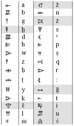 Obrázky, zvuky či videa k tématu Ugaritské klínové písmo na Wikimedia Commons