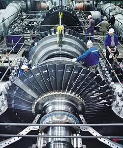 Teplo, vzniklé spalováním rozdrceného uhlí v kotli, ohřívá v primárním okruhu upravenou (demineralizovanou) vodu. Voda se v kotli postupně mění na páru o teplotě až 525 °C, moderní bloky i přes 600 °C a o přetlaku více než 6 MPa. Tato přehřátá pára je vedena do turbíny, v níž roztáčí lopatky turbíny. Turbina je spojena s alternátorem, v němž je vyráběna elektrická energie. Elektřina o napětí až 15 kV je vedena do transformátorů, v nichž se napětí upravuje na distribuční nebo přenosovou hladinu napětí 110 až 400 kV a pak je vyvedena do rozvodné sítě.