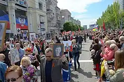 K začátku roku 2015 bylo na Ukrajině registrováno 1 007 900 vnitřních uprchlíků, z toho polovina v Doněcké a Luhanské oblasti, dle údajů Úřadu vysokého komisaře OSN pro uprchlíky.[78] Do konce září 2015 dle ruských úřadů migrovalo do Ruska zhruba 1,3 milionu Ukrajinců. Z tohoto počtu požádalo 400 000 lidí o status uprchlíka, dále bylo 300 000 žadatelů o dočasný pobyt a 600 000 lidí nijak neregistrovaly. Celkově žilo v Rusku ke konci listopadu 2015 kolem 2,6 milionu Ukrajinců.[79]