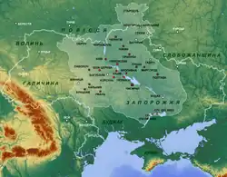 Roku 1569 došlo ke vzniku Lublinské unie, ještě těsnějšího sepětí Polska a Litvy. Území Ukrajiny, které spadalo pod Litvu (přibližně po řeku Dněpr), bylo v rámci Polsko-litevského státu převedeno přímo pod Polské království.[30] Rusínská (ukrajinská) šlechta získala v Polsku stejná práva, jaká příslušela polské šlechtě, ovšem za cenu polonizace a přijetí katolictví. Výjimku tvořili záporožští kozáci, kteří se sveřepě drželi pravoslaví. Na jimi ovládaném území s centrem na Siči se soustřeďovali lidé z různých sociálních vrstev, zejména však poddanských, kteří sem utekli před feudálním útlakem. Vytvořili jakýsi vojenský kvazistát, což Poláci tolerovali, neboť zjistili, že kozáci jsou užitečnou silou v boji s Turky a Tatary. Získali jistou autonomii dokonce i v polsko-litevské armádě (tzv. registrovaní kozáci).[31] Záporožci vytvářeli jakési vojenské nárazníkové pásmo v oblasti Divokých polí, sousedících s Krymských chanátem.