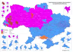 Dne 25. května 2014 se na Ukrajině uskutečnily prezidentské volby hlasováním všech občanů. Vítězem byl téměř ve všech regionech země včetně těch východních, kde se volby konaly, prozápadní Petro Porošenko. Protože prezident Porošenko nedokázal splnit většinu svých slibů, zejména omezit korupci, která se spíše ještě zhoršila, a zahájit potřebné reformy, v roce 2015 mu vyjádřilo podporu pouze 17 % ukrajinských voličů.[80]