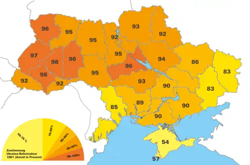 V roce 1990 vyhlásila Verchovna rada Ukrajiny (parlament) suverenitu země, nezávislost pak byla oficiálně vyhlášena 24. srpna 1991 současně s rozpadem Sovětského svazu. Prohlášení nezávislosti bylo potvrzeno referendem o nezávislosti Ukrajiny téhož roku za podpory 90,3 % voličů. Přechod k tržní ekonomice, který nebyl doprovázen cílevědomou kontrolou hospodářských subjektů, rozklad plánovaného hospodářství a především neschopnost politiků provést skutečné ekonomické a politické reformy, to všechno vedlo v 90. letech k propadu a dokonce agónii ekonomiky, která se vzpamatovala až okolo roku 2000.