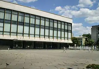 Za těchto okolností se divadla raději vyhýbala novinkám a uváděla přednostně stará „osvědčená“ díla, v inscenacích opět převládla pompéznost, hlučná patetičnost a přízemní naturalismus.[228][229] Z ostatních děl tohoto období lze zmínit jedinou operu významného haličského skladatele Stanislava Pylypovyče Ljudkevyče (1879–1979) Dovbuš (Довбуш, 1955) podle tragédie Osypa Feďkovyče,[230] Verykivského operu Uprchlíci (Втікачі, 1948) z doby likvidace Zadunajské Siče, Čyškovy Horníky (Шахтарі, 1949)[17] nebo Sandlerovu komediální operu Ve stepích Ukrajiny (В степах України, 1954).[231]
