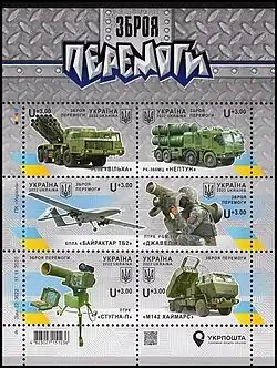Ukrajinská pošta vydává od roku 2022 řadu známek s motivy ovlivněnými probíhající válkou, např.: