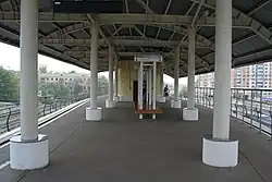 Stanice má jeden vestibul na východní straně nástupiště, který je spojen s nástupištěm dvěma eskalátory. Na západní straně stanice jsou samostatné vstupy do bezbariérového výtahu a požárního schodiště. Nástupiště (nejdelším nástupištěm na celé lince monorailu - 75 metrů) je chráněno před srážkami lehkou střechou, která je podepřena šesti páry sloupů podél osy stanice.