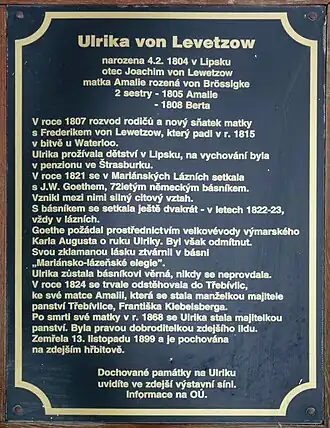 - ↑ BAUER, Jan. Goethova poslední láska se nikdy neprovdala. Ústecký deník. 2012-04-24. Dostupné online [cit. 2024-04-08].
