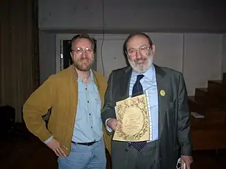 Umberto Eco ([umˈbɛrto ˈɛːko]IPA, 5. ledna 1932 Alessandria – 19. února 2016 Milán[2]) byl italský sémiolog, medievista, estetik, filosof a spisovatel, jeden z nejvýznamnějších představitelů postmoderny 60. let 20. století. Během své akademické kariéry napsal řadu esejů o sémiotice, středověké estetice, lingvistice a filosofii. Roku 1971, kdy se stal profesorem, byl jedním z inspirátorů prvního kurzu nového sémiologického oboru sdružujícího studium umění, hudby a zábavy, který se vyučuje na Boloňské univerzitě.[3][4] V osmdesátých letech propagoval na téže univerzitě zřízení studijního programu „Komunikační vědy“.[5] V roce 1988 založil Katedru komunikace na Univerzitě v San Marinu a Mezinárodní centrum pro sémiotická a kognitivní studia, od roku 2008 byl emeritním profesorem a prezidentem Scuola Superiore di Studi Umanistici při univerzitě v Boloni.[6] Členem italské akademie věd v oboru etiky, historie a filosofie se stal v roce 2010.[7]