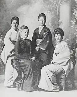 - ↑ a b c d HRAŠKOVÁ, Veronika. Vzdelávanie žien v období Meidži [online]. Masarykova univerzita, 2018 [cit. 2022-11-23]. Dostupné online.