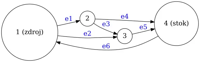 Tato matice vzniká jako matice koeficientů omezení ve formulaci lineárního programování problému maximálního toku v následující síti: