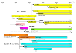 V 80. letech byly dvěma hlavními větvemi BSD Unix, který vyvíjela Kalifornská univerzita v Berkeley, a UNIX System V, který byl přímo od AT&T. Obě byly odvozeny z dřívějšího Unixu Verze 7, ale značně se odchýlily. I verze ostatních výrobců byly do jisté míry odlišné, i když vycházely z jedné z těchto dvou hlavních větví.