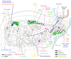 V průběhu výoje celého města zde vzniklo více než 700 jeskyní a to jak obytných, tak i výrobních a skladovacích. Město bylo rovněž opatřeno propracovaným systémem kanálků na přivádění dešťové vody. Byl zde i tunel vyhloubený ve skále (zčásti přírodního původu) zajišťující tajný přístup ke studni na úrovni řeky, důležitý zvláště v případě obležení.[1]