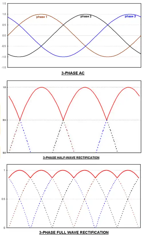 - ↑ Usměrňovače Přednáška – výkonová elektronika [online]. Fakulta mechatroniky, informatiky a mezioborových studií Technické univerzity v Liberci [cit. 2024-06-19]. Dostupné online.