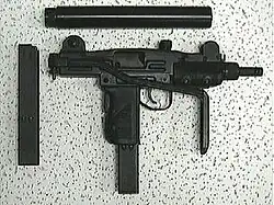 - ↑ GABOURY, David. The UZI Submachine Gun Examined. [s.l.]: Andrew Mowbray Publishing, Inc., 3 July 2017. ISBN 978-1931464765. S. 25.