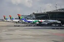- South African Airways (SA) užívá Letiště Johannesburg (JNB) a mezinárodní letiště Kapské Město (CPT).
