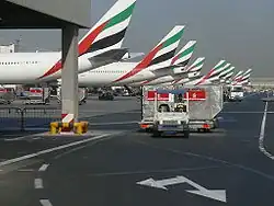 - Emirates Airline (EK) užívá mezinárodní letiště Dubaj (DXB).