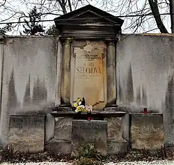 - ↑ Sdělujeme, že dne 23. února 1947 po krátké nemoci zemřel náš drahý otec, tchán, děd a praděd Václav Štěch. Svobodné noviny. 1947-02-26, roč. 3, čís. 48, s. 6. Dostupné online.