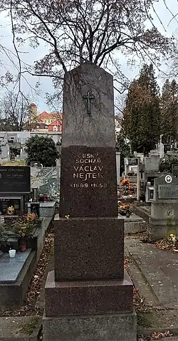 Zemřel v Praze, pochován je na městském hřbitově ve Slaném.[6]