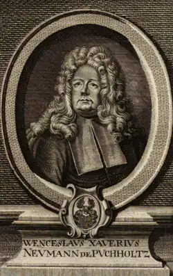- ↑ Neumann z Pucholtze, Jan Václav Xaver, 1670-1743 [online]. Středočeská vědecká knihovna v Kladně [cit. 2023-02-05]. Dostupné online.