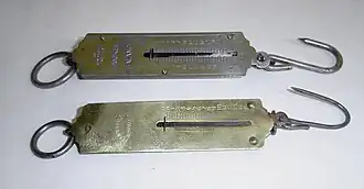 Pružinové váhy nepotřebují závaží, nýbrž využívají Hookova zákona, podle kterého je velikost deformace, např. relativního prodloužení pružného materiálu Δl, přímo úměrné působící síle F. Pružina, používaná u tohoto typu vah může být buď spirálová, nebo válcová.