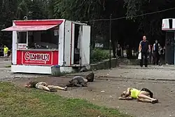 Dne 18. srpna 2014 zasáhla dělostřelecká palba konvoj s uprchlíky u Luhanska, z útoku se vzájemně obviňovaly obě strany.[85][86][87] Server Parlamentní listy uvedl, že podle agentury Reuters za útokem stojí separatisté,[88] zpráva agentury Reuters však takové tvrzení neuvádí.[87]