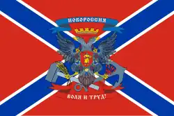 Vlajka Novoruska – svazu obou samozvaných lidových republik (fungující v letech 20142015), která se podobá vlajce ruského carského námořnictva