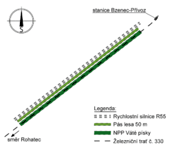 - ↑ a b HBH Projekt spol. s r. o. Dokumentace k MZP088 - Rychlostní silnice R55 v úseku Moravský Písek - Rohatec. Brno: [s.n.], 30. 03. 2006. Dostupné online. S. 133–135.[nedostupný zdroj]