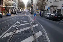 - ↑ W. Angenendt, D. Bräuer: Mittelage-Haltestellen mit Fahrbahnanhebung (Středové zastávky se zvýšenou vozovkou), Berichte des Bundesantstalt für Straßenwesen, Verkehrstechnik Heft V 96, Bergisch Gladbach, květen 2002