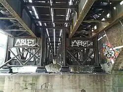 Rozšíření pro druhou kolej, uskutečněné v roce 1869, znamenalo, že k celému mostnímu komplexu byly na západní straně přistavěny obdobné klenby, tentokrát kamenné.[2] Šířka viaduktu tak dosáhla asi 10 metrů.