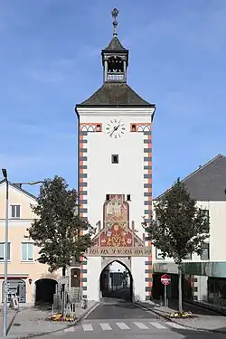 Také císař Maxmilian I. Habsburský se přátelil se pánem nedalekého zámku Wartenburg Wolfgangem von Polheim. Oba podporovali město a několikrát se tu zdržovali. Na městskou věž dali připevnit svůj erb.