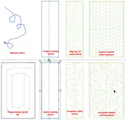 - ↑ The analysis of machine embroidery stitches [online]. East-Ukrainian National University, 2014-06-06 datum přístupu = 2019-09-07. Dostupné online. (anglicky)